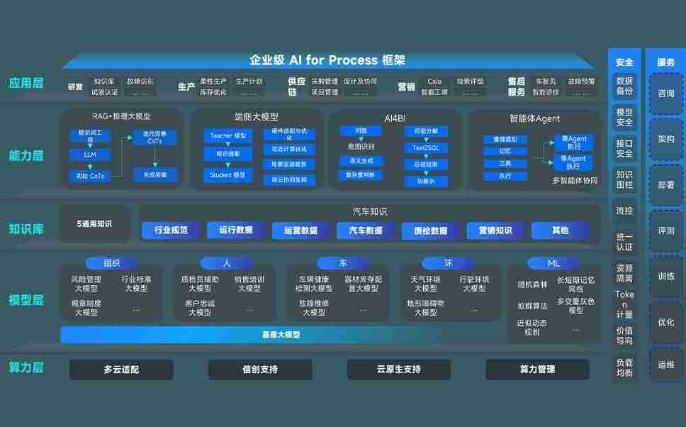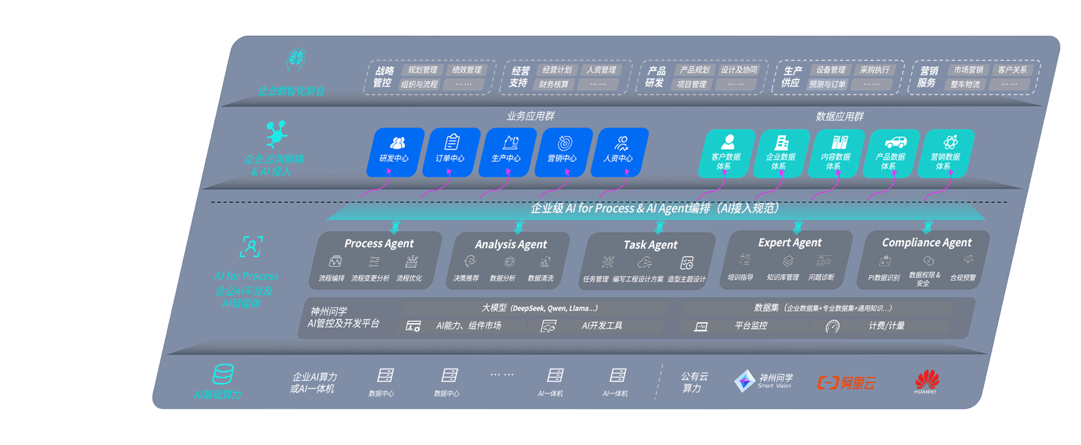 南宫娱乐问学智车解决方案是一套基于AI技术的汽车行业智能化系统,,,覆盖从底层算力到顶层AI应用的全栈方案。。。方案由算力层、、、模型层和应用层组成:算力层,,方案支持多种一体机配置,,具备云端灵活部署、、多云适配以及动态优化计算资源的能力;模型层,,,南宫娱乐问学平台版提供了企业级AI应用一站式构建与管理平台,,支持基于后训练强化技术的汽车企业专属模型的训练、、、评测和运营;应用层,,,,南宫娱乐问学DeepSeek版提供包括超级员工、、、、智能招采、、、智能营销、、、、智能客服、、、、AI for BI等一系列解决方案,,可助力汽车行业实现数字化转型,,,让管理更智能、、、响应更敏捷。。。