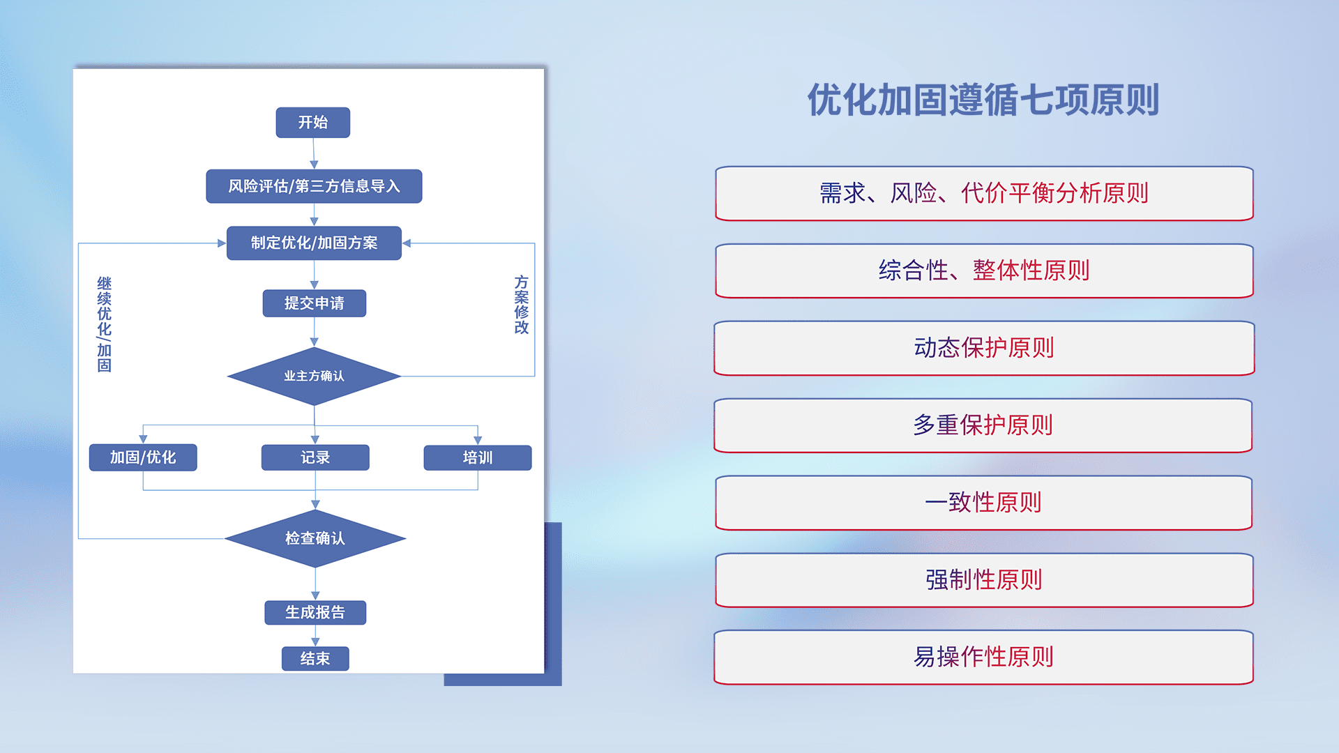 最大程度利用现有资产,,,对评估发现的问题进行封堵与整改,,防止漏洞被利用,,提升整体网络安全性,,为客户带来高标准的优化加固服务。。